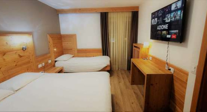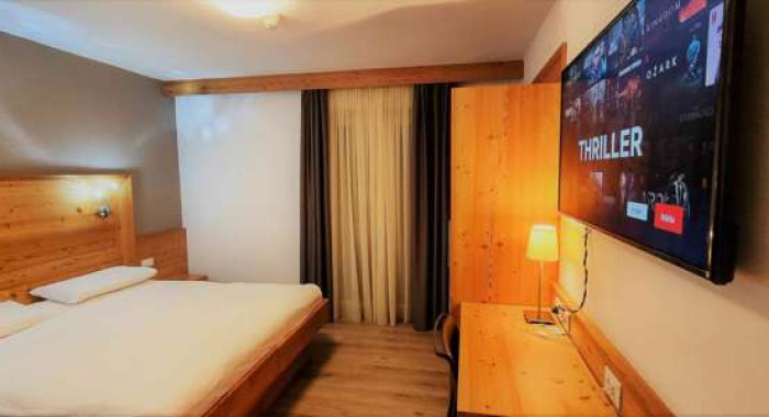 The hotel has a cosy lounge area and comfortable rooms, plus a small wellness area featuring a sauna and whirlpool for a touch of après-ski relaxation. Guests stay on a bed and breakfast basis, with the option to upgrade to half board at the nearby Hotel Ariston, just steps away.