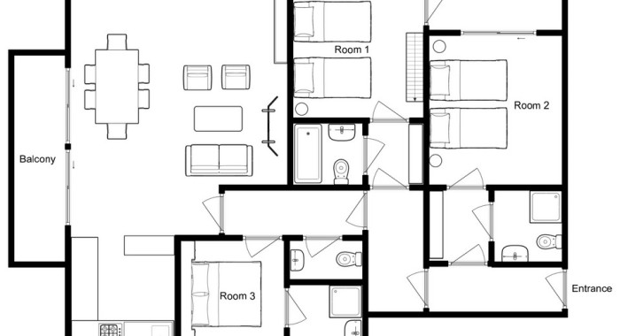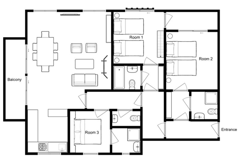 The open-plan living and dining space is perfect for winding down with a view. There's comfy seating for six, a TV, and full-length windows bathing the space in light. Each of the three bedrooms comes with an en-suite or private bathroom, ensuring comfort and privacy.