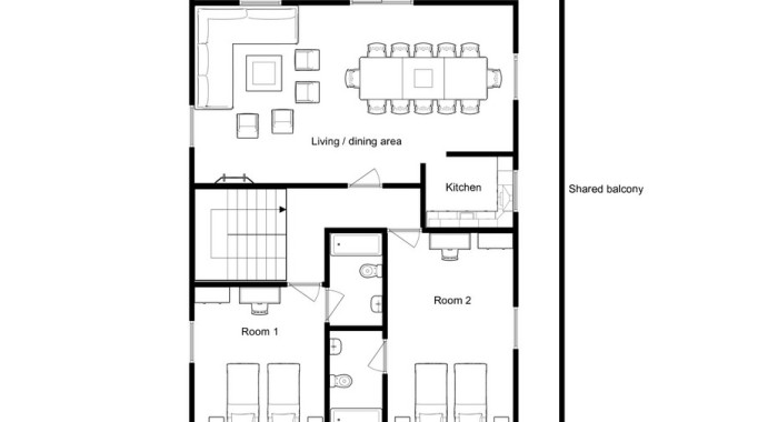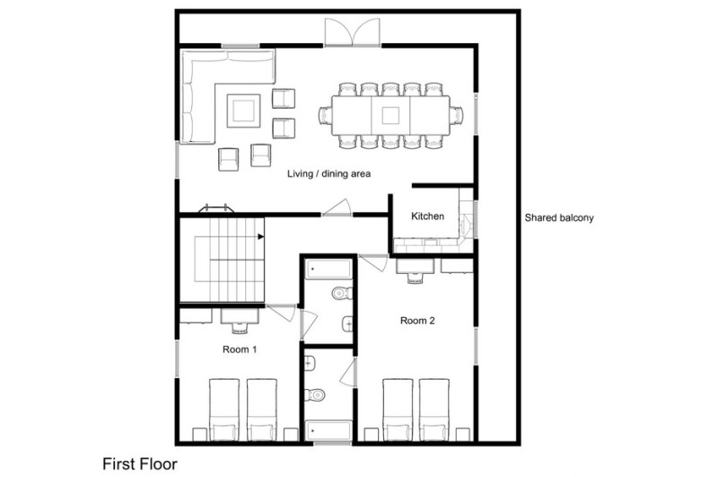 The living and dining space is designed for groups to unwind together - think comfy seating, exposed beams, a fireplace and a large dining table for long, relaxed meals. Each of the six twin bedrooms is en-suite and simply styled, offering a bright and comfortable place to rest after a day on the slopes.