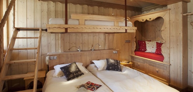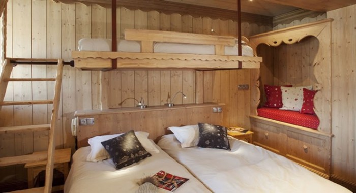 Larger rooms with mountain or village view have a third bed above the twin/double bed